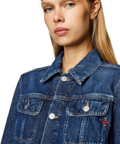 ג׳קט דנים בגזרה ישרה בצבע כחול כהה, עם רקמת לוגו D קטן אדום