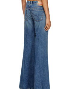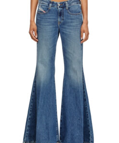 Flared fit with a low waist and streamlined slim leg that widens dramatically from the knee down. A contemporary interpretation of the archival Diesel D-Ferrenz style, defining details of this jean include the inset fifth pocket, thick double belt loops, and iconic Eagle stitching on the back pockets.