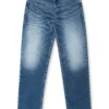 ג׳ינס כחול בגזרה צרה במותניים ומתרחבת ברגליים, בהשראת שנות השבעים