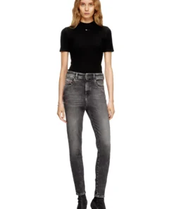 ג׳ינס אפור כהה בגזרת סופר סקיני גבוהה שמדגישה את קימורי הגוף