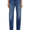 Loose style with a regular waist and straight leg. The design is characterised by a cut-off waistband and subtly frayed pockets.