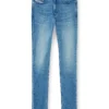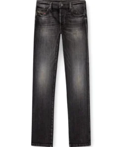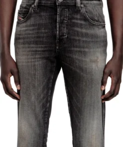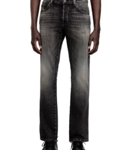 ג'ינס בגזרה צרה עם מותן טבעית וסגירת כפתורים, סילואטה קלאסית ומדויקת בצבע שחור