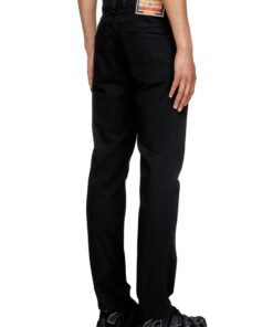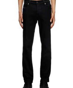 ג׳ינס שחור בגזרה הצרה האייקונית של הניינטיז, עם מותן רגילה וסגירת כפתורים