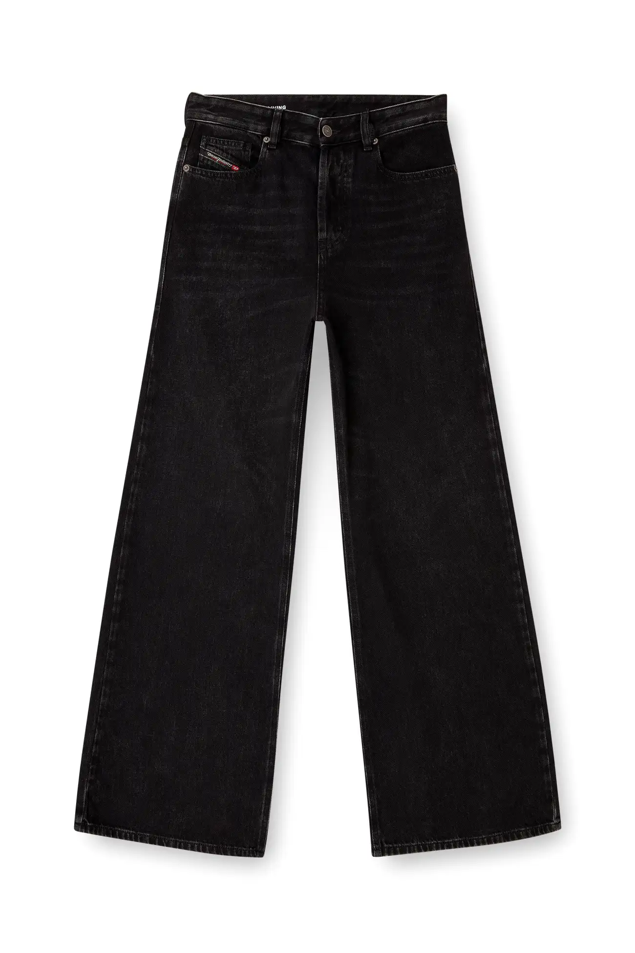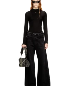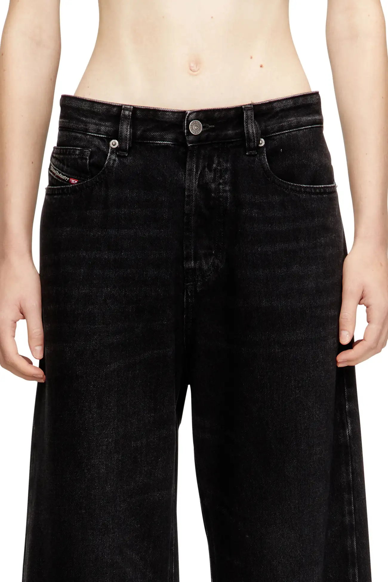 ג׳ינס בגזרה רחבה עם מותן נמוכה ורגל רחבה בהשראת סילואטות שנות ה-90 בצבע שחור/אפור כהה