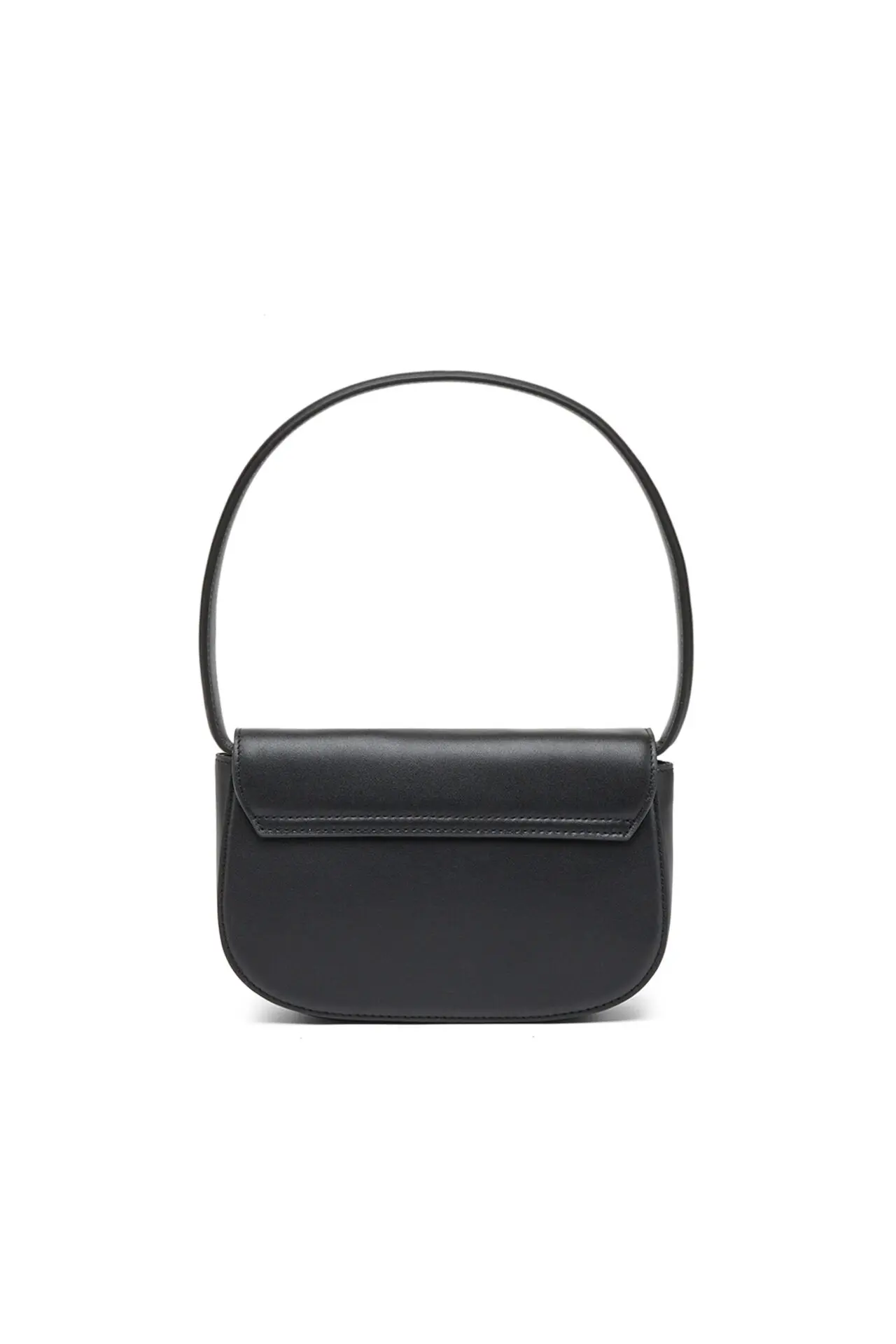 This structured bag is synonymous with Diesel's distinctive style, and has become a signature accessory. Crafted from nappa leather, it has a handle that fits over the shoulder and an optional belt-like strap for cross-body wear. The flap is embellished with an enamelled metal plaque featuring the oval D logo, making it instantly recognisable.