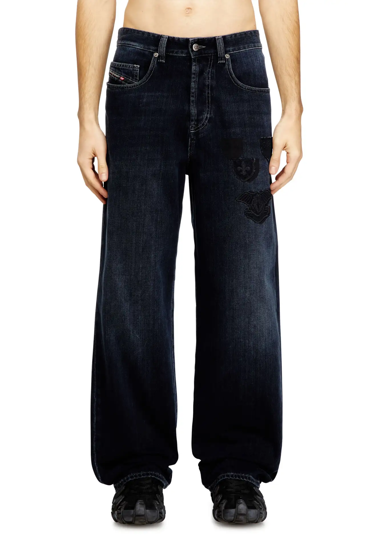 ג'ינס בגזרה רחבה עם מותן נמוכה מפשעה נמוכה ורגל רחבה. סילואטה ארוכה ורפויה עם נפח מודגש וסגירת כפתורים.
