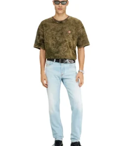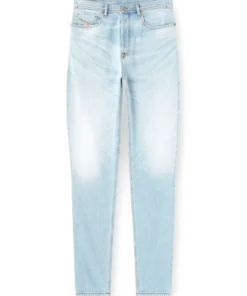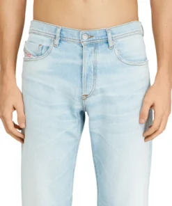 ג׳ינס בגזרה רגילה עם מותן בינונית ורגל מתחדדת קלות בגוון כחול בהיר. הסילואטה מרווחת אך מדויקת והדגם נסגר בכפתורים.