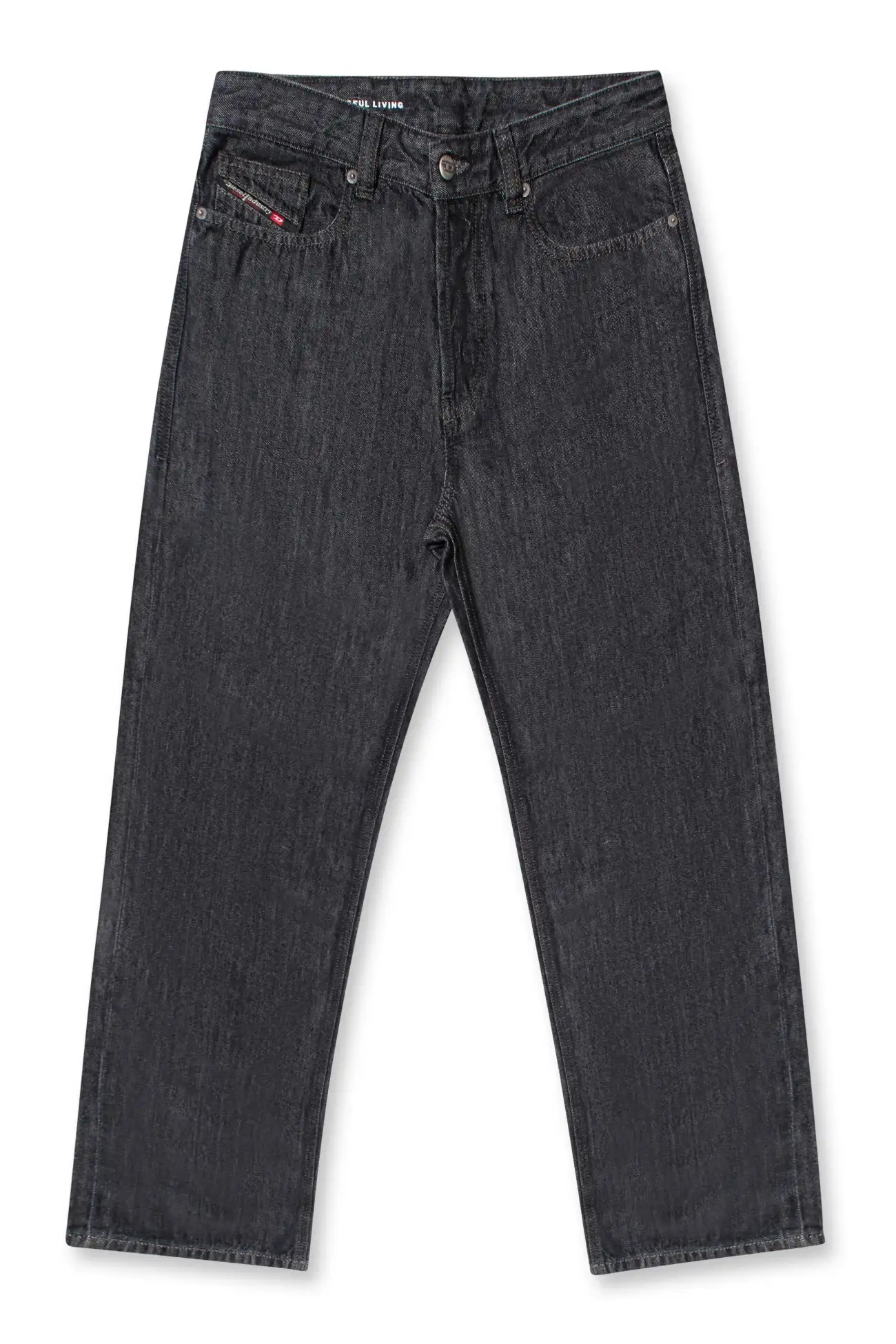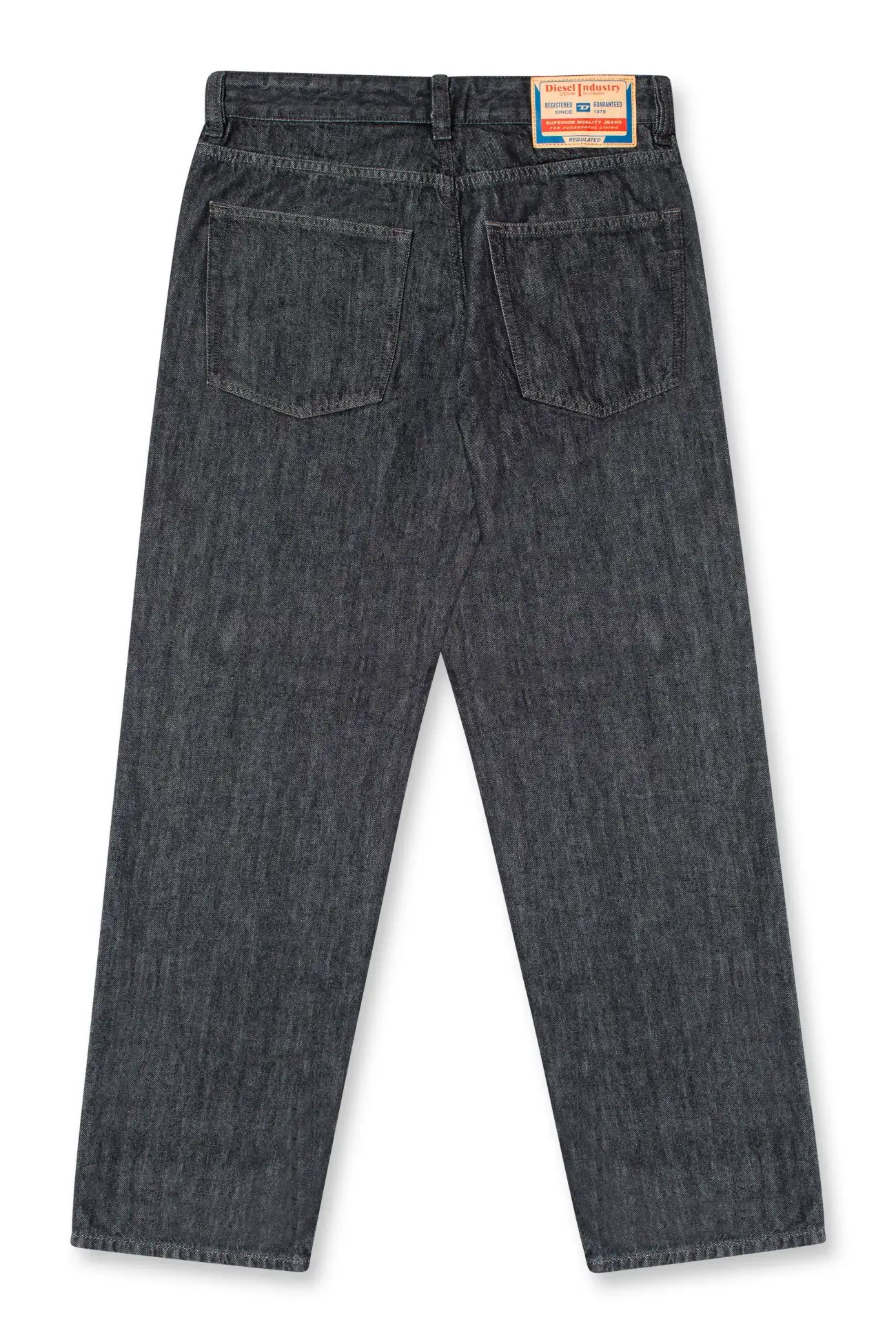 Regular fit with a medium waist, low crotch, and a lightly tapered leg. Button fly.