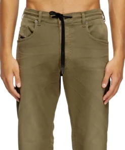 ג׳וג ג׳ינס בגזרה רגילה עם מותן בינונית ורגל מתחדדת, בד JoggJeans נוח במיוחד, סגירת רוכסן ושרוך טונאלי במותן בצבע ירוק