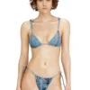 Women's one-piece swimsuit featuring a deep, plunging neckline and halterneck ties. Made from stretch fabric containing recycled polyester and elastane for enhanced elasticity, the swimming costume is fully lined and showcases an all-over houndstooth print, completed by contrasting trims outlining the high-cut silhouette.