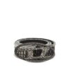 חגורת עור בצבע שחור, עם אבזם מתכת בצורת לוגו D משובץ קריסטלים שנשברו כדי לייצר טקסטורה ייחודית