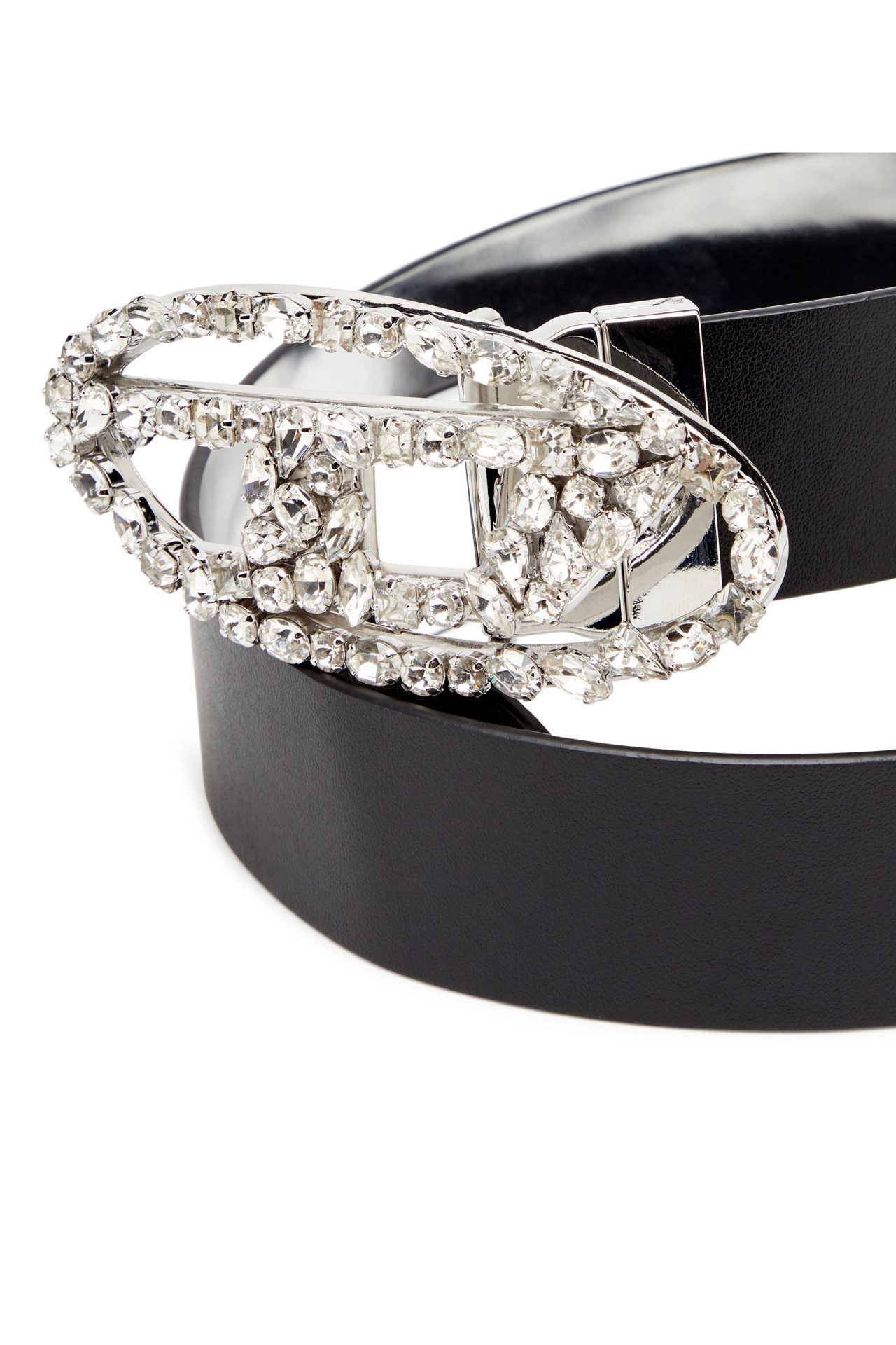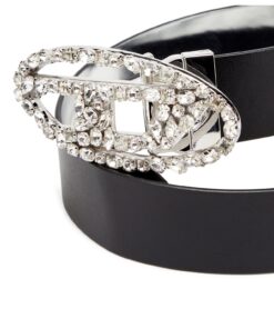 חגורת עור דו צדדית עם אבזם קריסטלים – שחור כסף