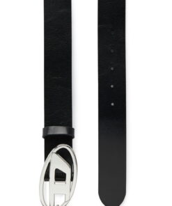 חגורת עור בצבע שחור עם אבזם מתכתי כסוף בצורת D