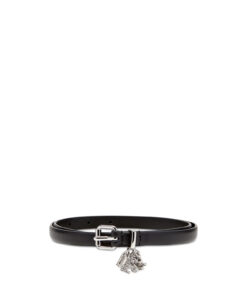 Cut in a slim width, this women’s belt is crafted from responsible leather and fastened with a polished silver roller buckle. The metal logo letter charms dangling from the loop have been bedecked with crystals for a touch of sparkle.
