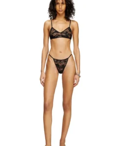 תחתוני חוטיני שחורים מבד תחרה אלסטי בדוגמת הסוואה, עם רצועות דקות ורקמת לוגו D קטנה