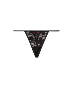 תחתוני חוטיני תחרה בדוגמת הסוואה – שחור