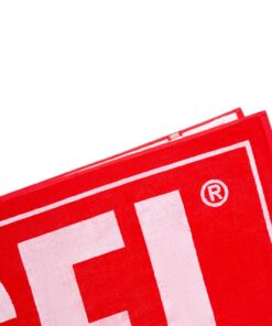 מגבת חוף עשויה 100% כותנה, ארוגה בטכניקת ג'קארד עם לוגו אדום גדול