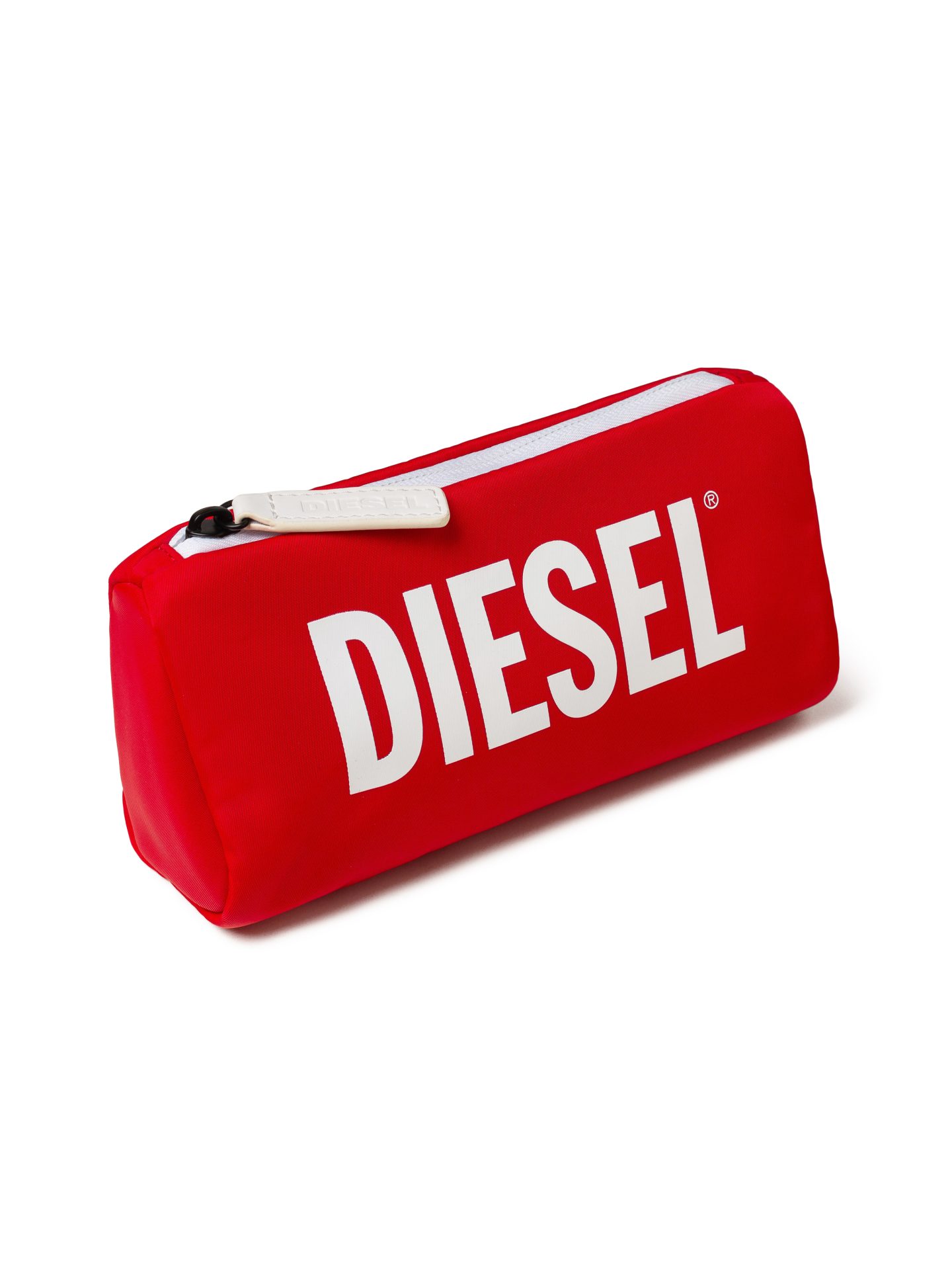קלמר אדום בסגירת רוכסן מבד ניילון עמיד, עם הדפס לוגו דיזל בצבע לבן