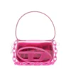 This women’s shopping bag is a cleverly organised carry-all, roomy enough for a 13″ laptop. Featuring three internal compartments, including one secured with a zip, it’s made from treated blue denim with tobacco-stitched diamond quilting – one of Diesel’s most recognisable textures. Long chain handles sparkle with crystal-studded logo letter charms, while a padded strap lets you tuck it neatly under the arm.