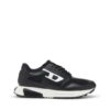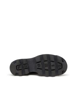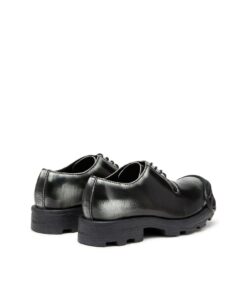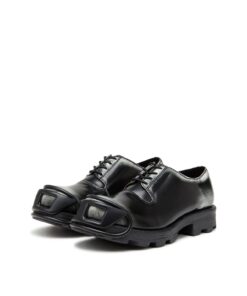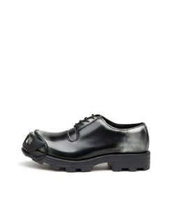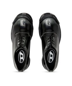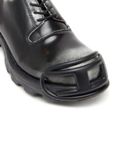 נעליים נמוכות מעור שחור בשתי טקסטורות שונות, עם סוליית טרקטור ולוחיות לוגו D ממתכת בקצה האצבעות