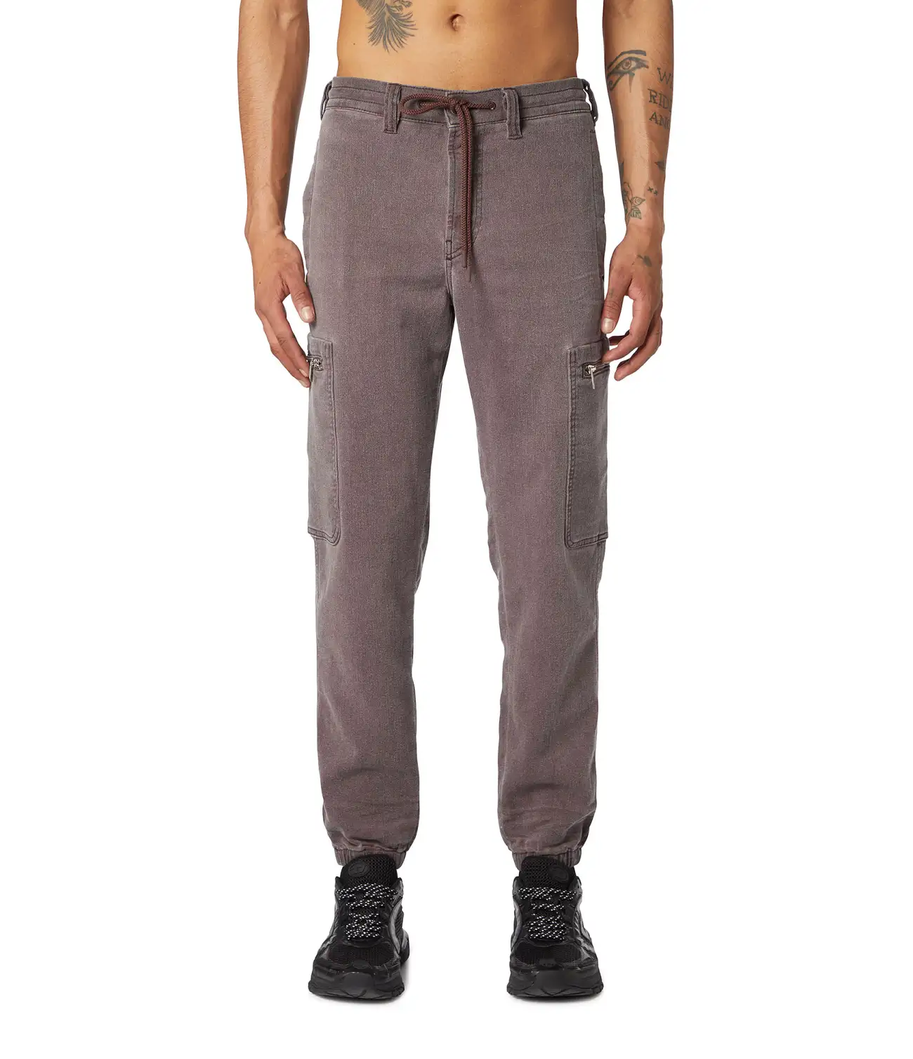 ג׳וג ג׳ינס יוניסקס בגזרה צרה בגוון סגול, עם מותן בינונית ושרוך הידוק, בד אלסטי לתנועה טבעית ורוכסן טכני בכיס הצד.