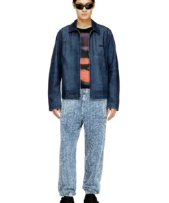 די לאב ג׳ינס בגזרה צמודה בצבע כחול בהיר, עם מותן בינונית ורגל צרה. גימורי אלסטיים עדינים וכיס פאץ' אחורי יחיד למראה נקי ופונקציונלי