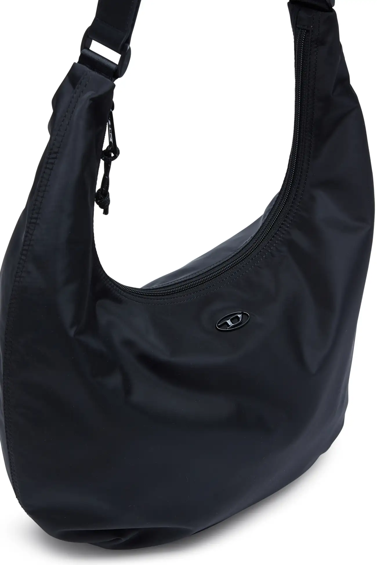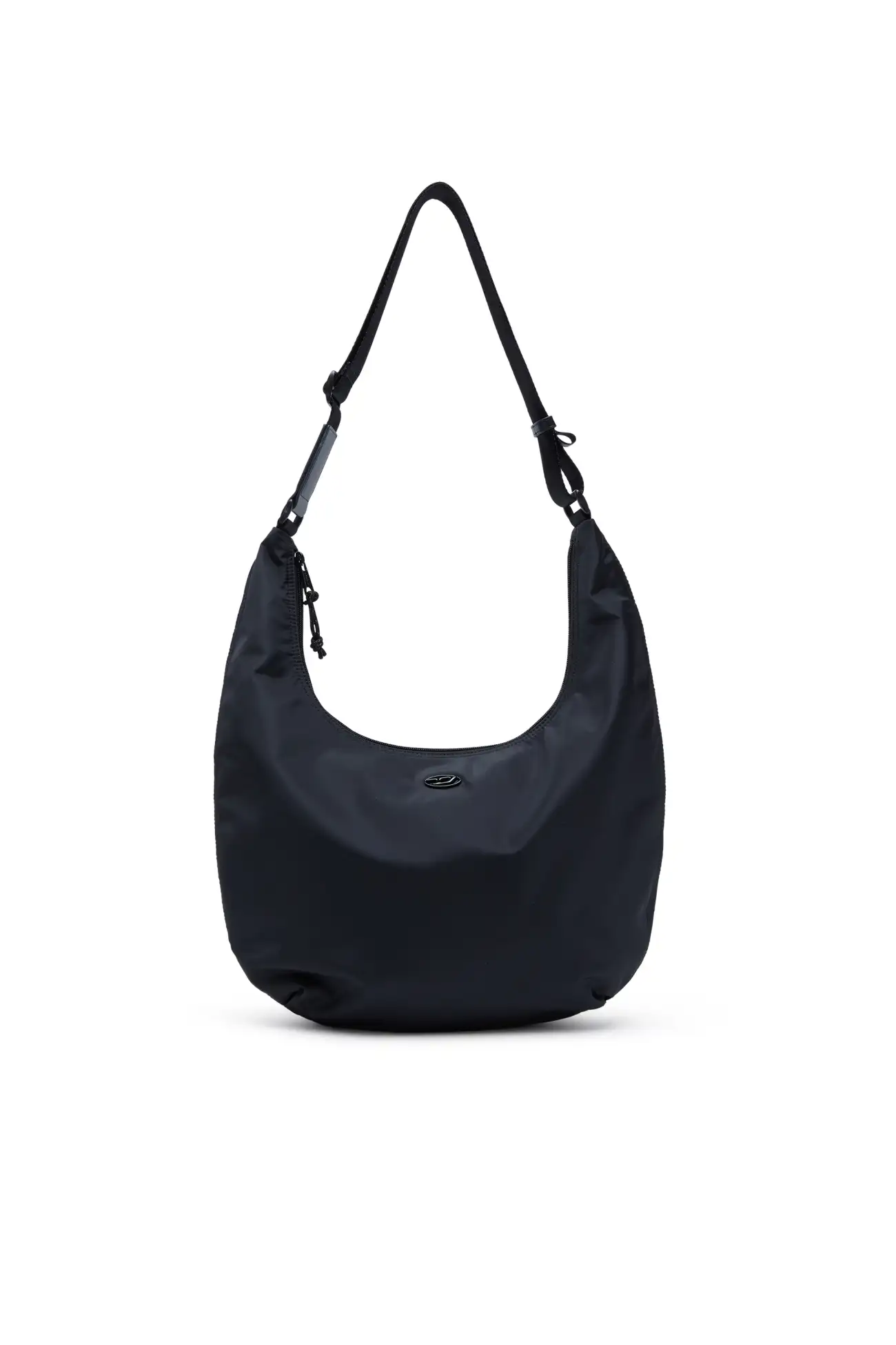 Hobo bag in technical fabric, featuring an adjustable webbing shoulder strap and metal zip closure. Detailed with a tonal Oval D metal plate on the front panel, and equipped with an inner zip pocket on the back panel.