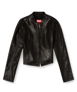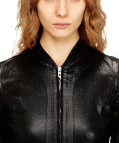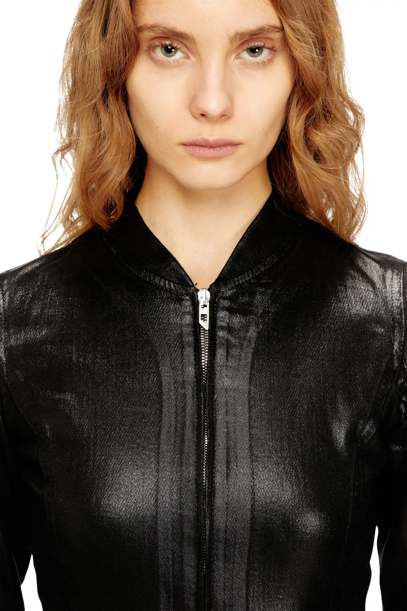 ג׳קט ג'וג ג'ינס קצר בציפוי מבריק – שחור