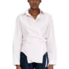 חולצה שרוול קצר בצבע כחול בהיר מדנים ליוסיל עם תוספות לייס בכתפיים וסגירת כפתורי תיק תק לכל האורך