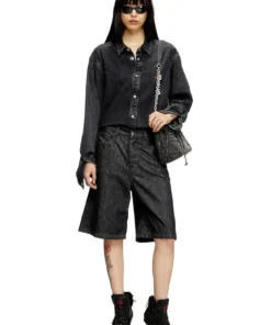 ג׳ינס ברמודה בגזרה רחבה – כחול כהה