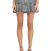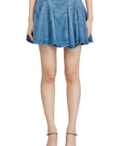 חצאית מיני מדנים קל משקל בגימור סטונווש עם קפלים – כחול בהיר