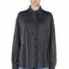 Women's shirt with long sleeves, crafted from fix denim in partially organic cotton, it features a grey wash with an iconic DNA look, with subtle used effects and small abrasions at the hems. The design features classic Western-style flap pockets on the chest, pointed yokes, and metal snap button closures.