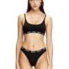 חזיית ברלט לבנה מכותנה אלסטית, עם כתפיות דקות והדפס לוגו חוזר על הגומי