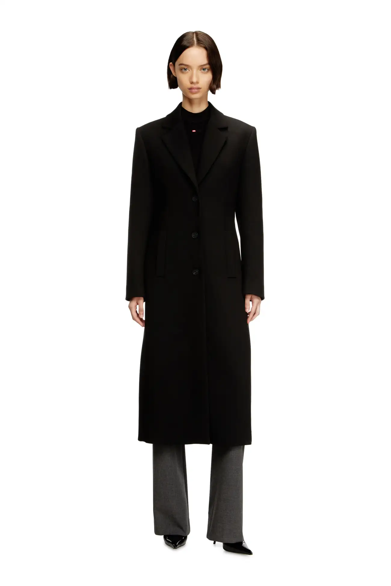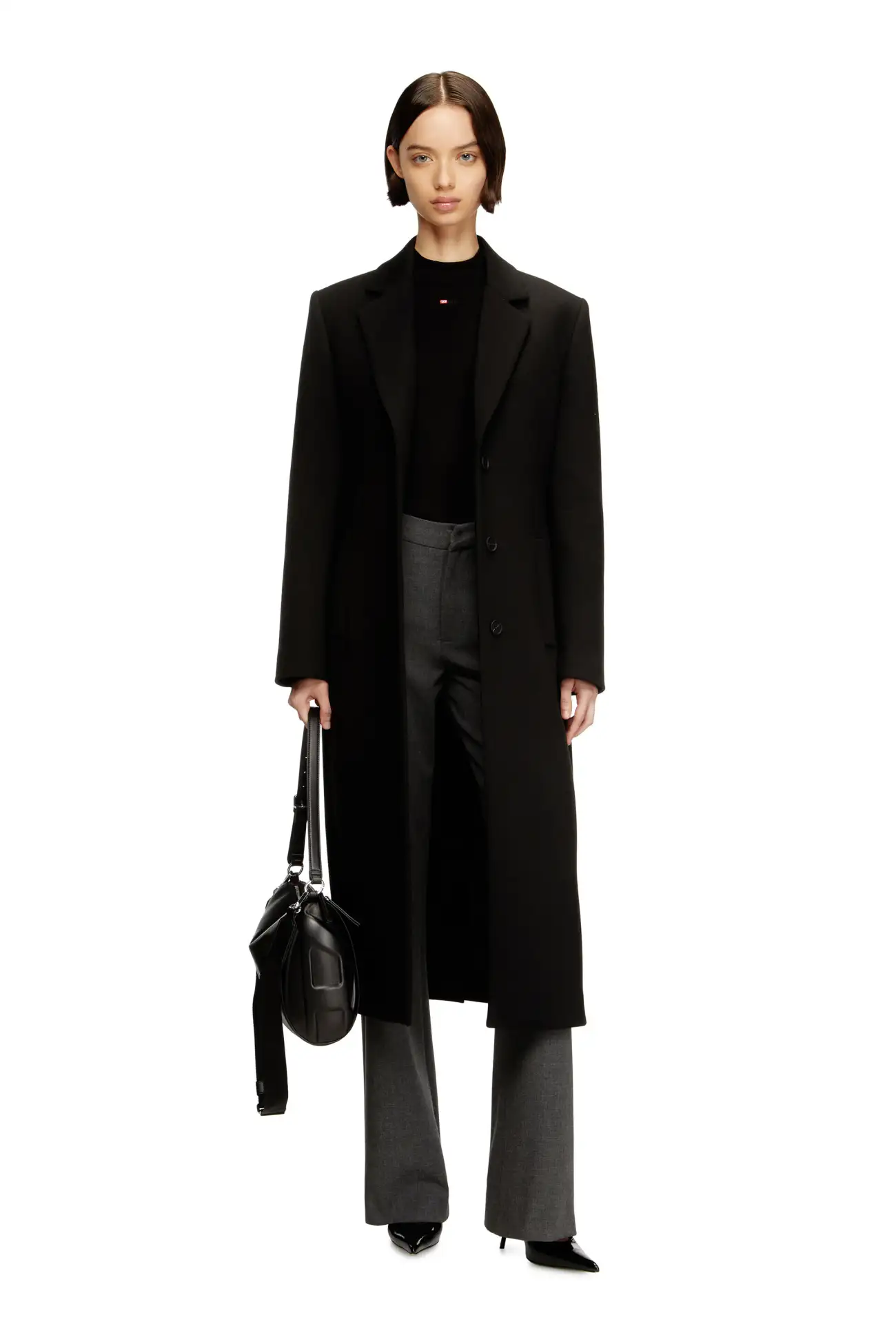 Women’s long coat in wool-blend tailoring fabric. This single-breasted style is classic and unadorned - save for the discreet Oval D plaque at the back - focusing all attention on its flattering hourglass silhouette. A lining ensures easy layering.