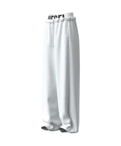מכנסי טרנינג מפליז כותנה עם חגורת מותן אלסטית ולוגו מודגש, עם תוספת אלסטן לנוחות ותנועה חופשית בצבע לבן