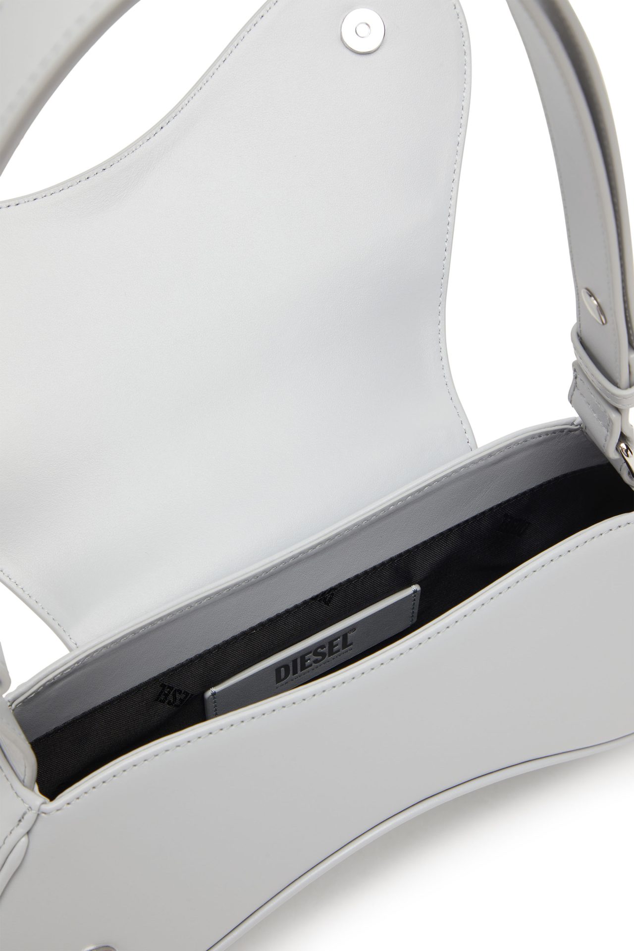 תיק בהשראת שלט גיימרים עם רצועה מתכווננת לנשיאה על הכתף או באופן אלכסוני, עשוי עור בצבע אפור בהיר בגימור חצי מבריק