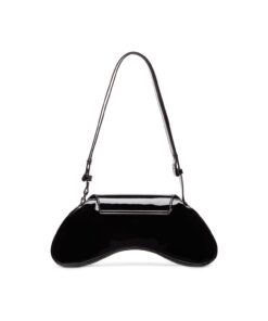 תיק בהשראת שלט גיימרים עם רצועה מתכווננת לנשיאה על הכתף או באופן אלכסוני, עשוי עור סינטטי מבריק בצבע שחור