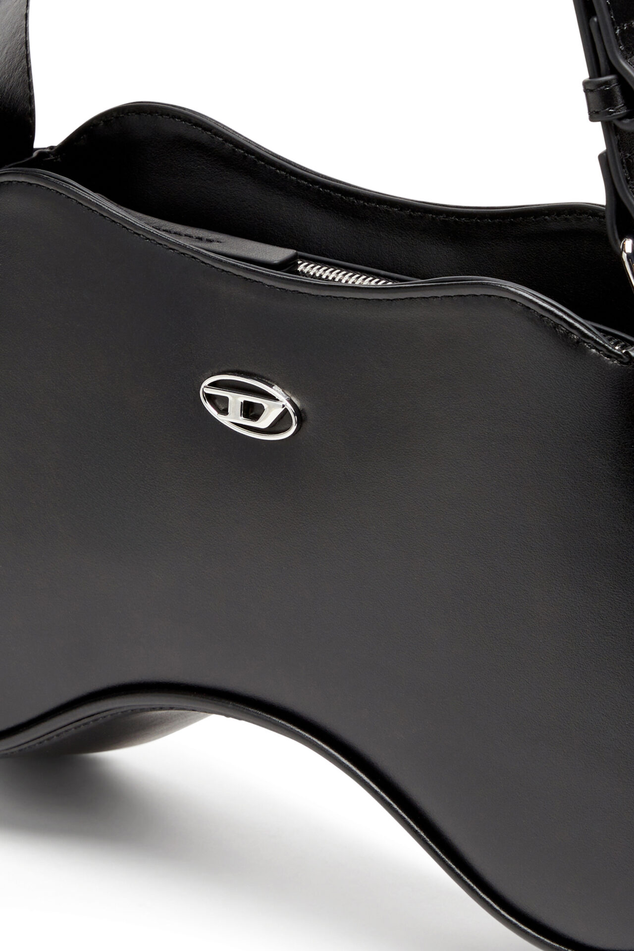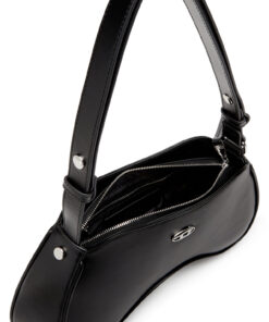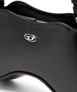 תיק כתף בגזרה ייחודית בהשראת שלט גיימרים. עשוי עור מבריק חלקית בצבע שחור, עם סגירת רוכסן בחלקו העליון ולוחית לוגו D אליפטי. רצועת הכתף ניתנת להתאמה