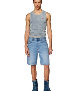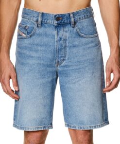Men's five-pocket shorts with a regular waist and straight leg, cut to knee length. The style is crafted from light blue fix denim, and channels an authentic, lived-in look.
