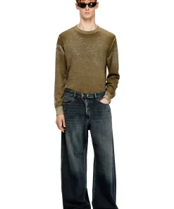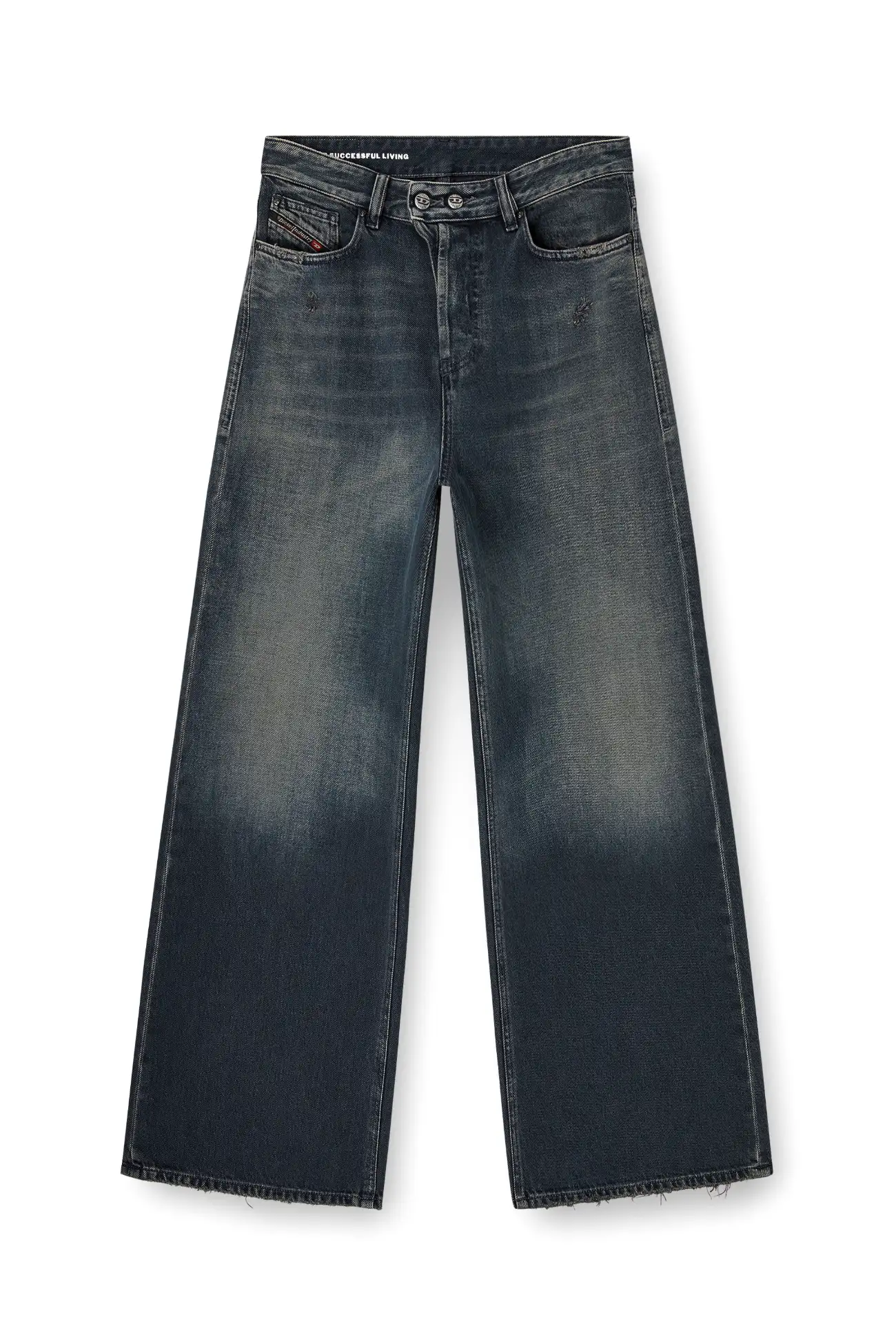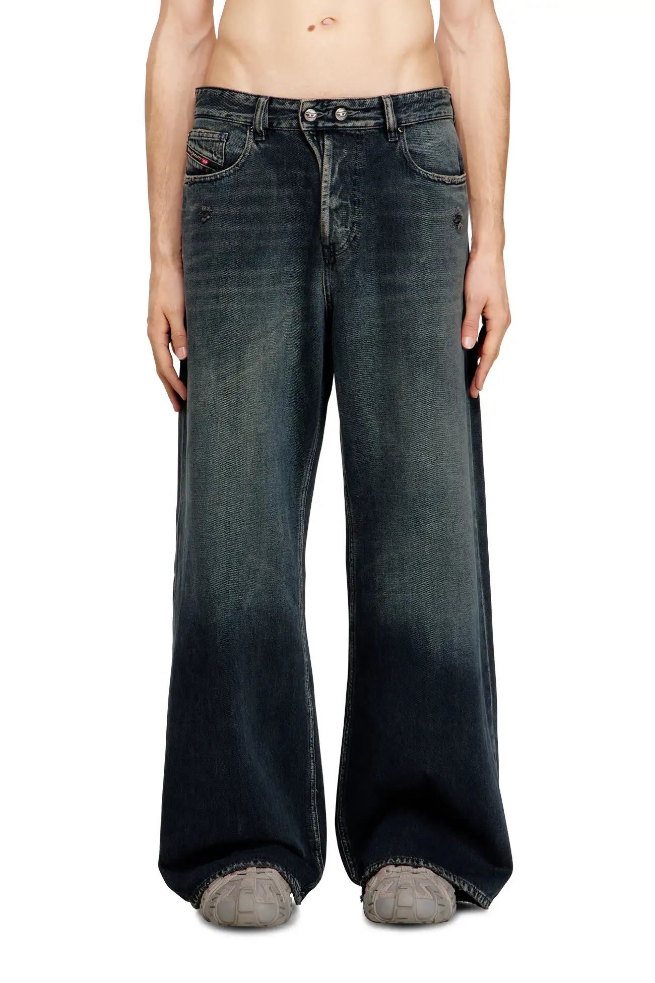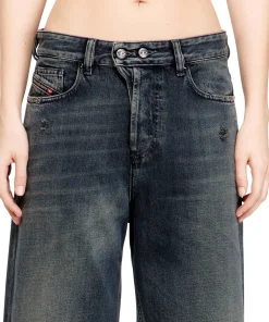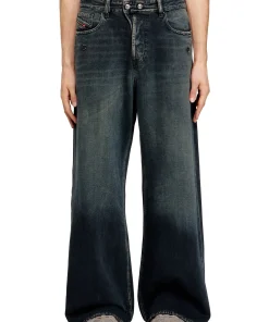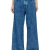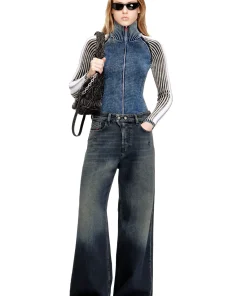 ג׳ינס בגזרה רפויה בצבע כחול כהה עם מותן נמוכה ורגל רחבה, בהשראת ג׳ינס משנות ה־90