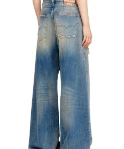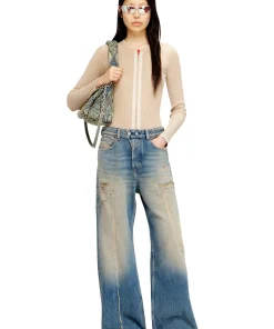 ג׳ינס בגזרה רפויה בצבע כחול בינוני עם מותן נמוכה ורגל רחבה, בסילואטה בהשראת ג׳ינס משנות ה־90