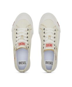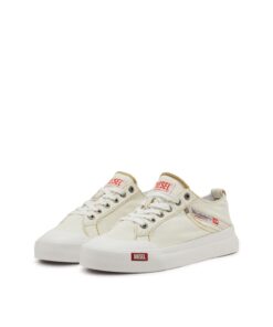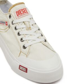 סניקרס בגזרה נמוכה מבד דנים לבן, עם דיטיילים בהשראת הג׳ינסים של דיזל, כמו תוויות לוגו וכיס קטן