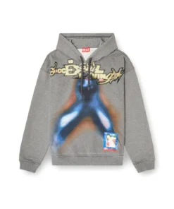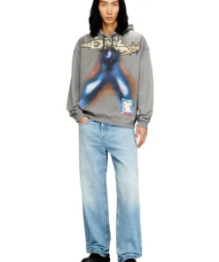 Hoodie with a relaxed fit, designed for maximum comfort, with a practical kangaroo-style front pocket. Made of unbrushed organic-cotton fleece, with elasticized cuffs and bottom hem for a soft and adaptable fit. Multiple digital prints on the front are paired with branded details such as a cotton drawstring with Oval D printed ends and the Diesel Biscotto logo applied on the left side of the chest.