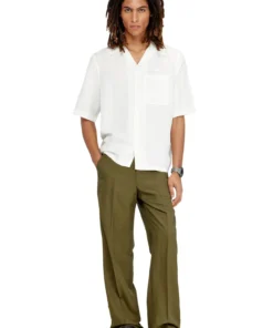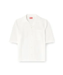 חולצה שרוול קצר בגזרה רגילה מתערובת פשתן, ויסקוזה ומודאל, עם גימור צבוע למגע רך, סגירת כפתורים קדמית וכיס חזה עם רקמת לוגו בצבע לבן