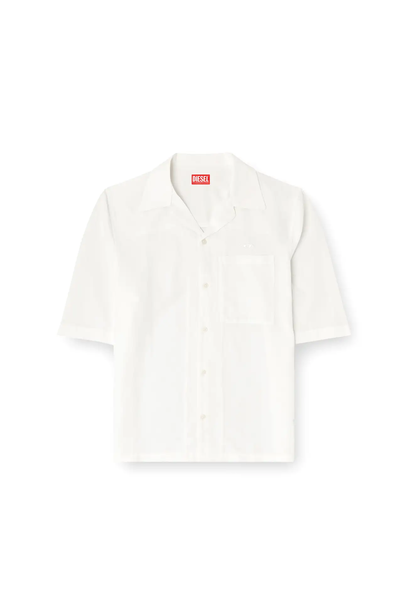 Men's short-sleeved shirt crafted from a lightweight and breathable blend of modal, responsibly-sourced viscose, and linen, featuring a garment-dyed treatment for a soft texture. Styled with a four-hole button front closure, a chest pocket on the left side adorned with an embroidered Oval D logo, and a regular fit that offers relaxed proportions.