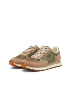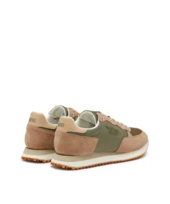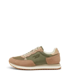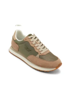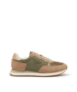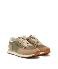 סניקרס בעיצוב ספורטיבי בהשראת נעלי ריצה, עם שילוב פאנלים מחומרים שונים היוצרים מראה יומיומי ונקי. החלק העליון משלב רשת, זמש וחומר סינתטי בגווני בז'/ירוק, עם לוגו D קטן בצד ושרוכים תואמים. סוליה קלה עם בסיס משונן משלימה את הדגם ומעניקה נוחות ויציבות לשימוש יומיומי