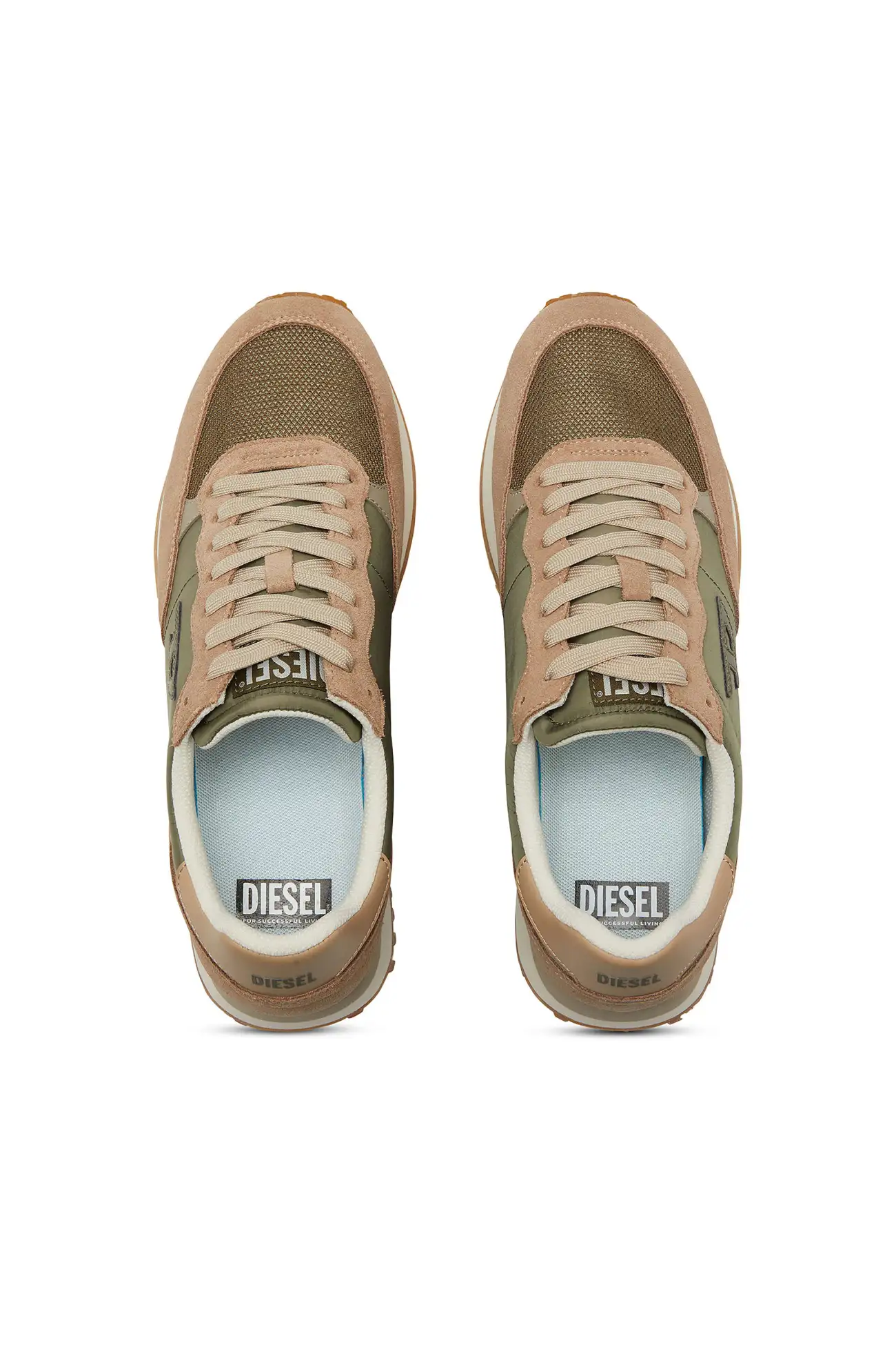 S-D-LIGHT sneakers inspired by classic running silhouettes, combining mesh, suede and smooth synthetic panels in a clean everyday design. The upper is rendered in beige and green tones, finished with a small D logo on the side and matching laces, while the lightweight serrated sole provides comfort and steady support throughout the day.