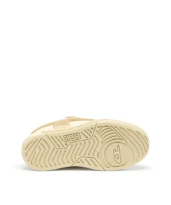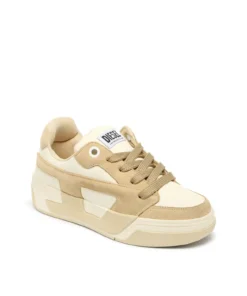 סניקרס נשים בהשראת סקייט משנות ה־90 בצבע בז', שילוב פאנלים מעור וזמש עם לשון מרופדת גדולה, סוליית EVA קלה עם הגבהת עקב פנימית של 2.5 ס״מ, לוגו די מפוצל ואוברסייז המשתרע על החלק העליון והסוליה, גימור פרה־דיסטרסט למראה משומש
