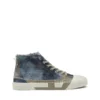 Vulcanized sneakers featuring a low and sturdy upper with raw-cut edges and a grained texture. They have the logo on the tongue and a lace-up closure with metallic eyelets. The slightly elevated midsole gives a bold look, also thanks to the contrasting inserts that outline the letter D.