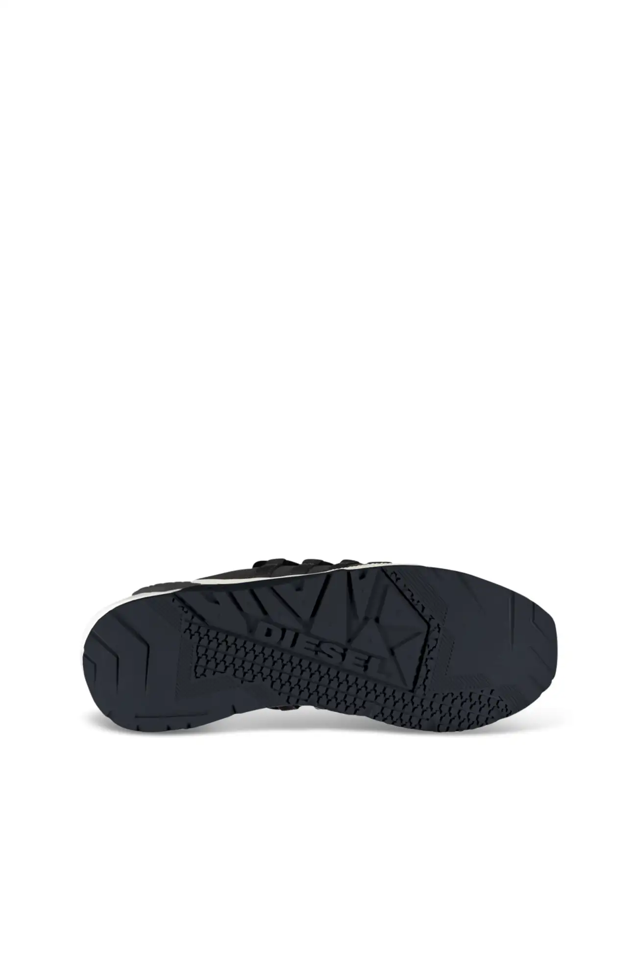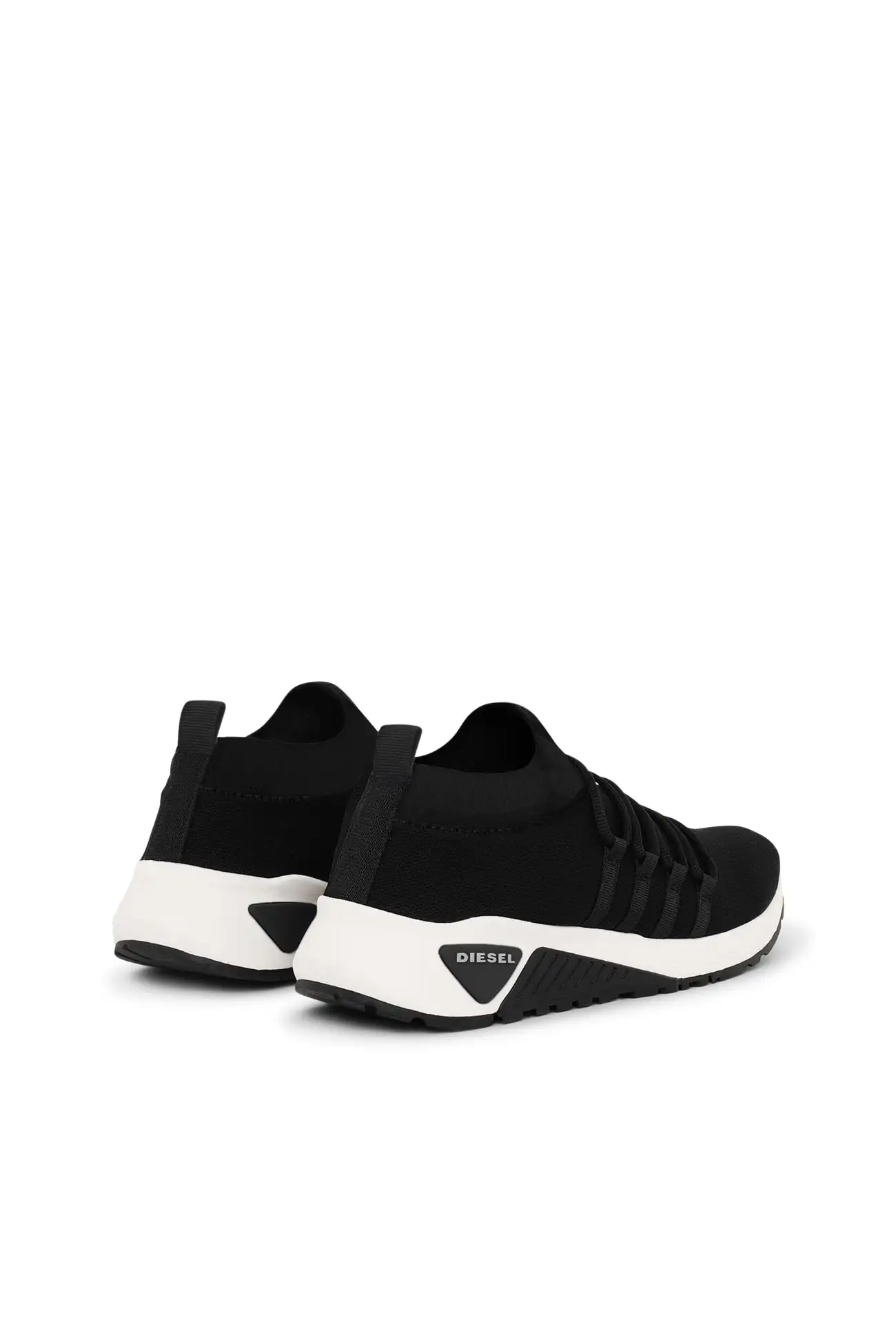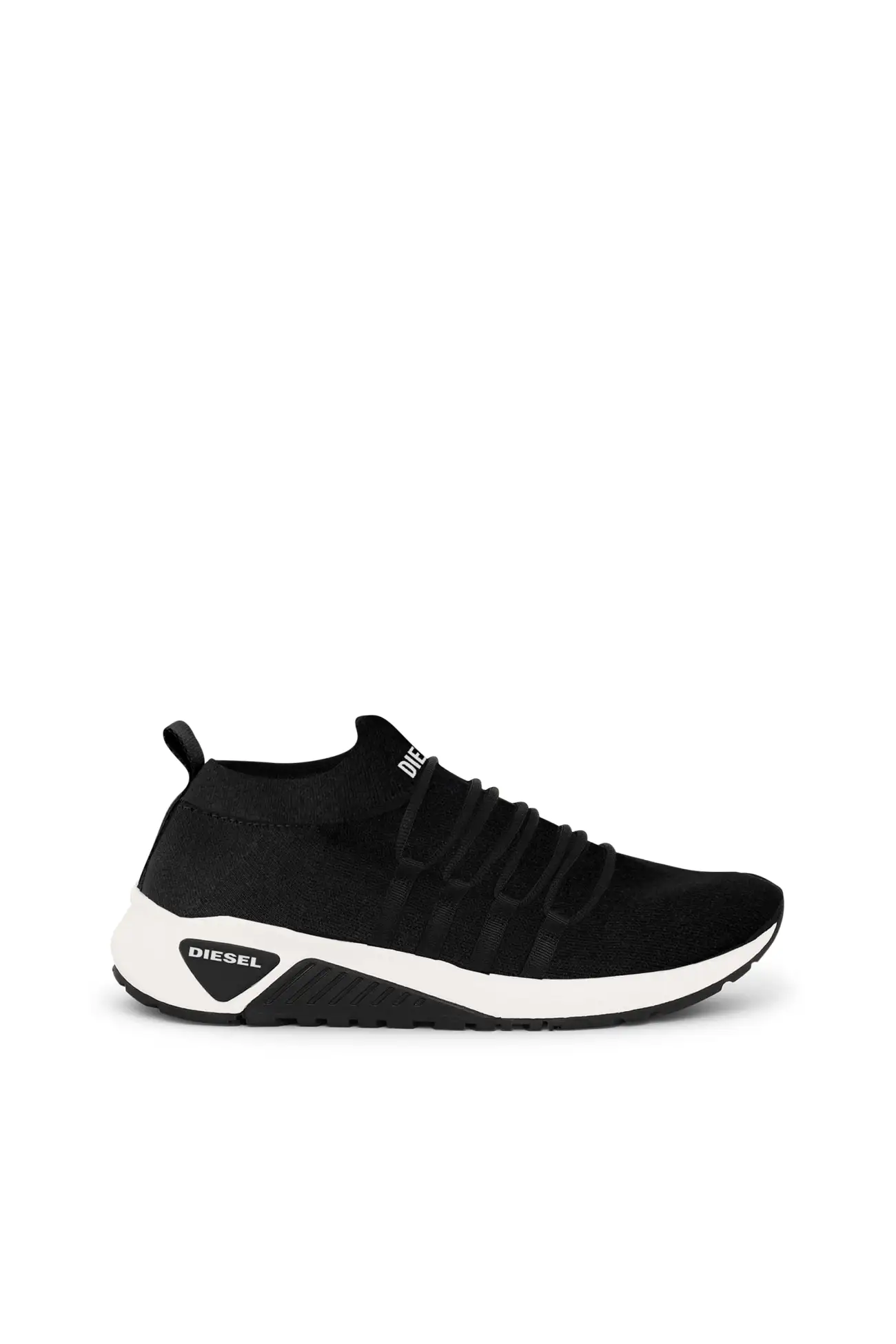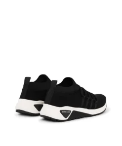 נעלי סניקרס גרב לגברים בצבע שחור/לבן, גזרה נמוכה במראה גרב עם חלק עליון סרוג וקל משקל, סוליה רב־שכבתית עמידה עם ריפוד רך, שילוב בין נעילה קלה לשרוכים לאחיזה נוספת